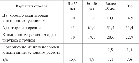 Больше всего адаптированных среди молодежи (до 35 лет), с трудом адаптируются в основном люди старших возрастов.