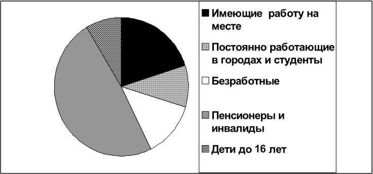 Ориентация сельского населения на города ярко выражена. На вопрос «Хотели бы Вы, чтобы Ваши дети жили в городе?» отрицательно ответили лишь 15% опрошенных. Причем для них самих, особенно для пенсионеров, городская жизнь не кажется привлекательной, около 80% не хотели бы переехать в город, но для своих детей они желают иной жизни.