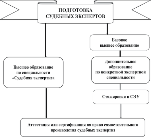 Выпускники вузов, получившие образование по специальности «судебная экспертиза», с успехом работают в государственных и негосударственных судебно-экспертных учреждениях. Ясно, что никакие курсы и стажировки не могут заменить систематического вузовского образования. Однако пока выпускников вузов еще явно недостаточно, чтобы удовлетворить все нужды практической судебно-экспертной деятельности. Поэтому подготовка и переподготовка экспертных кадров путем курсов и стажировок продолжается. Для самостоятельной подготовки вновь принятых сотрудников, не имеющих права производства экспертиз, составлялся индивидуальный план, который утверждался руководителем СЭУ, в соответствии с программой подготовки экспертов данного ведомства. За стажером, не имеющим экспертной подготовки, закреплялся эксперт-наставник из числа наиболее опытных работников. Наставник должен был оказывать вновь поступившему сотруднику методическую помощь в освоении теоретического курса и приобретении практических навыков работы с приборами и оборудованием, контролировать выполнение индивидуального плана подготовки, привлекать обучающегося к производству экспертиз и исследований, участию в следственных действиях в качестве специалиста.