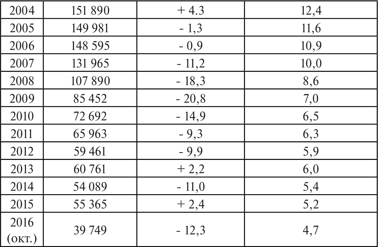 По мнению многих ученых и практиков, статистическая картина снижения показателей преступности не в полной мере отражает реальную картину борьбы с преступлениями[42]. В определенной мере столь резкое снижение показателей регистрации преступлений, совершаемых несовершеннолетними, во многом объясняется сокращением общей численности подростков уголовно наказуемого возраста, проживающих в России.