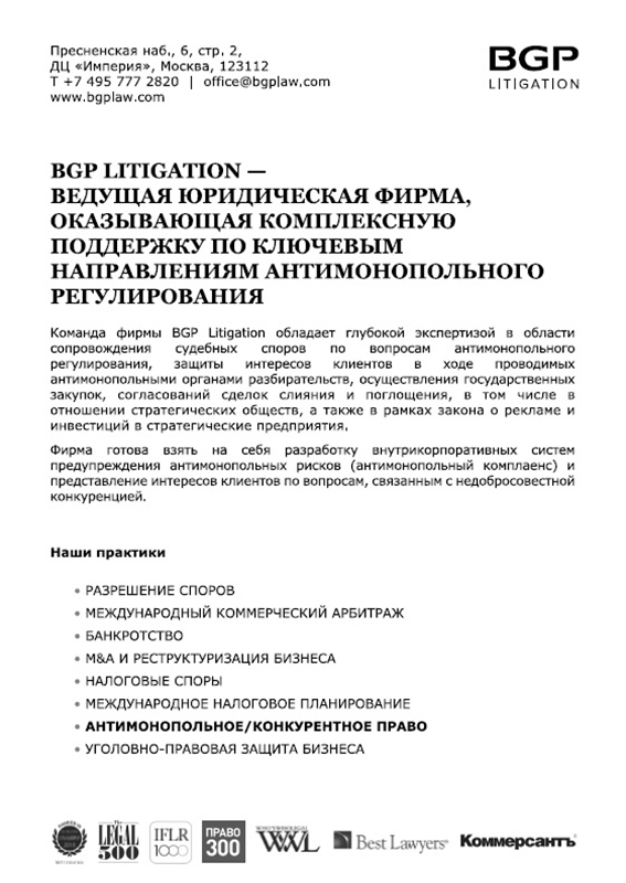 Акимова И. В., член Ассоциации антимонопольных экспертов, адвокат, руководитель антимонопольной практики Адвокатского бюро BGP Litigation.