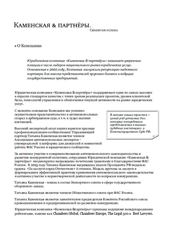 Татьяна Каменская – член Ассоциации антимонопольных экспертов, управляющий партнер юридической фирмы «Каменская и Партнеры»