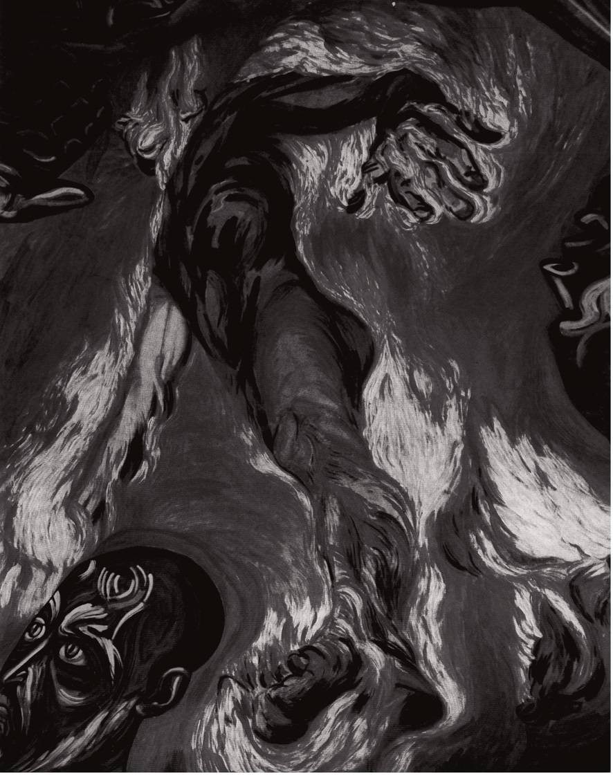 Что-то от кинематографического процесса или, по крайней мере, от того, как зритель воспринимает проецируемый на экран фильм, можно найти также во фресках Ороско в Гвадалахаре – вероятно, в расположении росписей и в их отношении к архитектурному пространству.