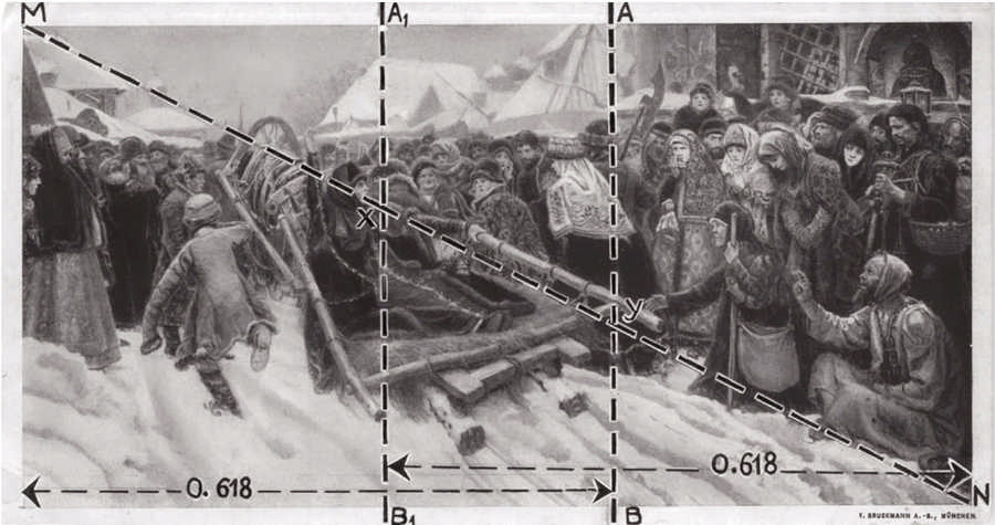 Фильмы Эйзенштейна не только населены многочисленными кричащими персонажами, но и включают в себя различные виды «вопиющего» киноматериала: экспрессивные формы передачи эмоций в кадрах и, прежде всего, сложные и динамичные монтажные приемы, позволяющие превратить весь фильм в гигантский крик. Для создания таких композиций Эйзенштейн обращался к живописным моделям, особенно в своих немых фильмах, где звук должен был подсказываться визуальными средствами. Ему пришлось тщательно изучить то, как художникам удавалось воплощать и выражать такое явление, как голос. Стремясь к теоретическому осмыслению и пост-анализу композиции «Потёмкина», Эйзенштейн, в частности, проводит параллель между этим фильмом и полотном Сурикова «Боярыня Морозова», чья сложная композиция, основанная на золотом сечении, по его словам, может емко и убедительно выразить с помощью визуальных средств то, что выходит за рамки изобразительности, то, что «пластически невыразимо», – то есть голос женщины, прославленной своим красноречием[20].
