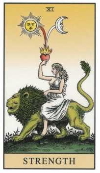 Контроль над чувствами, самообладание, дисциплина. Человек сам творит свою жизнь. Победа над страхом в любых проявлениях. Большой потенциал, но не хватает целенаправленности. Сила воли, бесстрашие, победа духа над плотью. Талантливость, вдохновение. Скрытый, неформальный лидер. Иногда указывает на человека, активно ищущего работу. Карта чаще описывает женщину, а не мужчину.