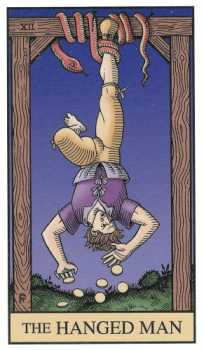 Повешенный знакомит нас с кальцинацией или обжигом (превращением плавких веществ в не плавящиеся). Красная змея символизирует действие сильного огня, выпавшие из кармана повешенного монеты означают потерю металлом своих "металлических свойств" – металлического блеска, способности к намагничиванию, пластичности, ковкости, электропроводности. Повешенный учит, что для достижения цели потребуется некая личная жертва. Если вы ничем не жертвуете, вы ничего не приобретаете. Помните, что тех, кого боги призывают, они вначале испытывают разнообразными бедами и отчаянием. Дар просветления дается в обмен на жертву собственным "я".