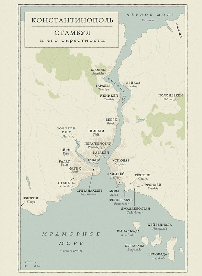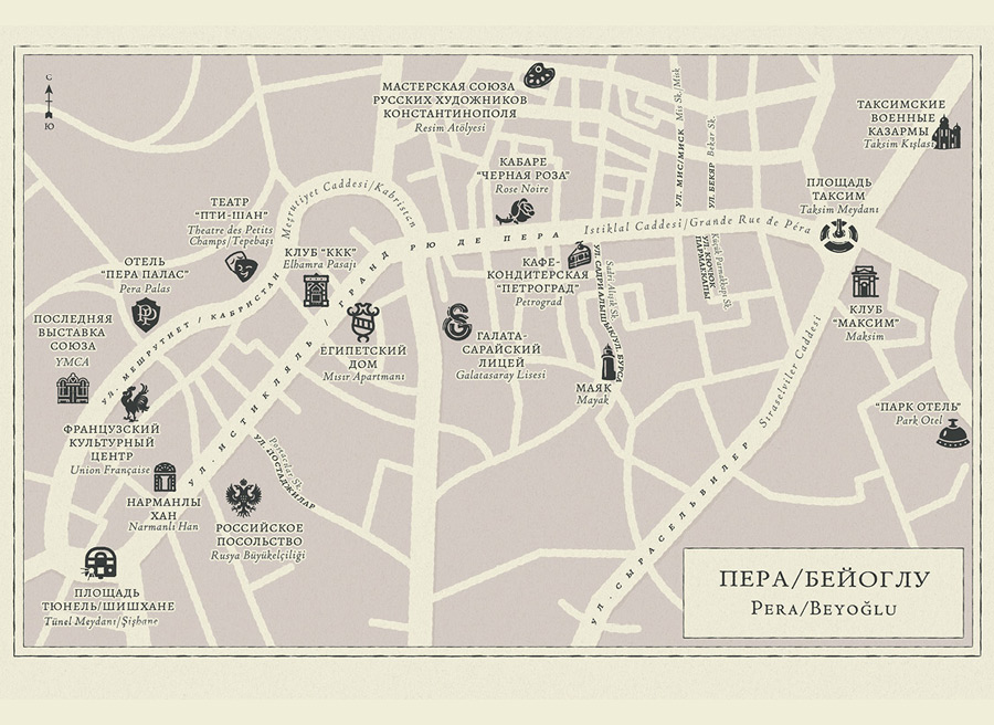 Карты, приведенные в книге, помогают лучше понять топографию Константинополя/Стамбула 1920–1930-х и служат путеводителем по упомянутым в книге местам – своеобразным точкам притяжения для русских эмигрантов. Многие районы города (особенно Пера/Бейоглу) за последние сто лет претерпели существенные изменения: некоторые улицы и здания сегодня не существуют, а какие-то учреждения «переехали». Кроме того, некоторые улицы, районы и части города сегодня носят совсем другие имена, нежели столетие назад. Что касается византийских памятников на Историческом полуострове и в его окрестностях, то названия (равно как и локации) некоторых из них все еще ставятся многими учеными под сомнение.