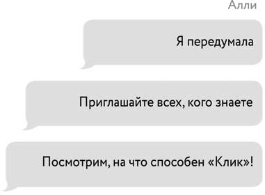 Алли представляла себе, как в «Клик» будут играть её подруги. Она даже думала, что приложение обойдёт и другие её компании, девчонок в классе, ребят, которых она знала по начальной школе. Но это было нечто иное. Она ничего подобного и вообразить не могла. Никогда, ни в жизнь!