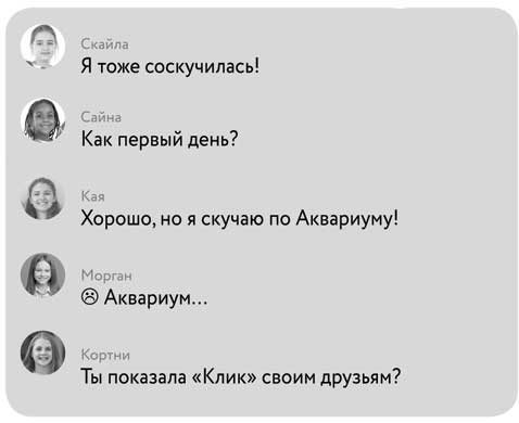 Продвинутый класс программирования весь прошлый год работал над совместными проектами, так что у неё были в контактах имена всех ребят. Она вернулась к своей парте, открыла «Клик» и начала проставлять галочки рядом с их именами. А затем нажала «ПРИГЛАСИТЬ».