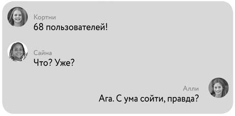 – Сто! – Алли завертелась на стуле, хихикая и размахивая телефоном над головой. – Сто! – повторила она. – Потрясающе! Это практически настоящая база пользователей!