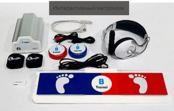 Для работы с интерактивным метрономом ребенку необходимо находиться в наушниках и удерживать специальный датчик, который надевается ему на руку.