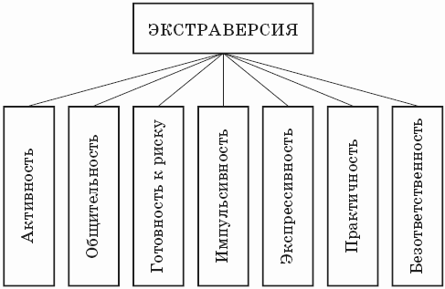 Термины «экстраверсия» и «интроверсия» сразу вызывают ассоциацию с именем швейцарского психиатра К. Г. Юнга, вышедшего из школы Фрейда. (Исключенный самим Фрейдом из числа учеников, Юнг впоследствии основал собственную научную школу.) На самом деле у этих терминов довольно долгая история: они встречаются уже в первом словаре английского языка доктора Джонсона, хотя имеют там несколько иное значение. Однако в XIX в. эти термины начали использоваться писателями и широкой публикой уже в своем современном (или близком к нему) значении. Сам Юнг заимствовал эти термины для обозначения некоторых очень сложных по структуре личностных характеристик, которые имели мало общего с наблюдаемым поведением человека; он разделил также психику человека на четыре компонента, каждый из которых мог быть экстравертивным или интровертивным. Считая, видимо, такое представление недостаточно сложным, он утверждал, что каждый из этих четырех компонентов существует как в сознательной, так и в противоположной ей подсознательной форме. Другими словами, если ваша функция чувств или функция мышления являются осознанно интровертными, то в вашем подсознании они выступают как экстравертные. Данная теория насколько запутана и трудна для понимания, что в настоящее время практически никто или лишь единицы психиатров и психологов принимают ее всерьез.