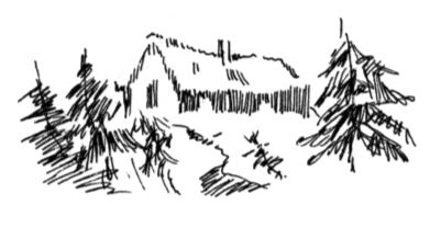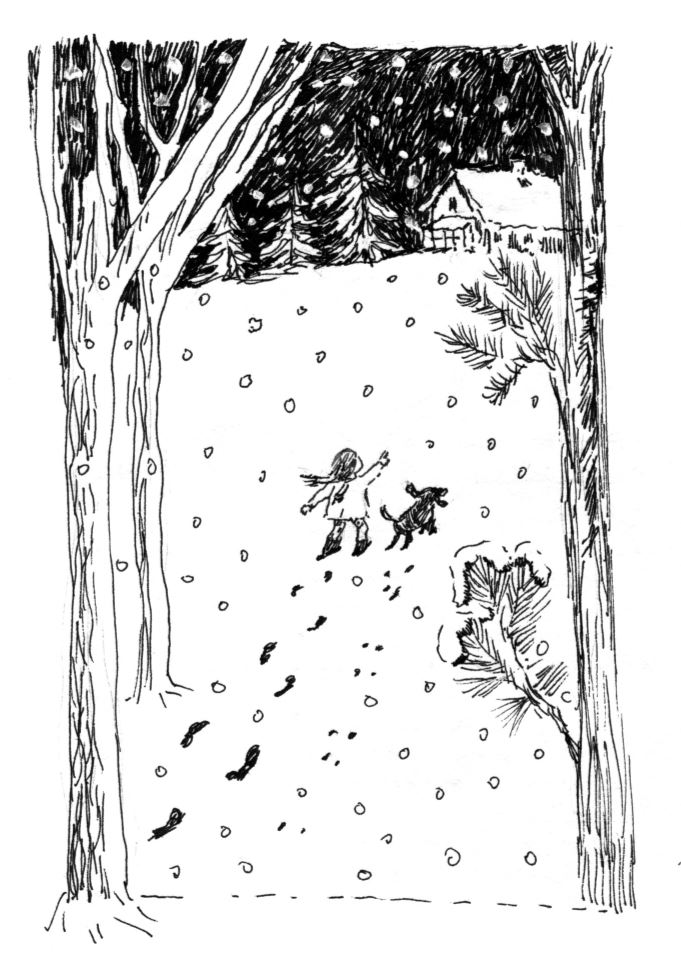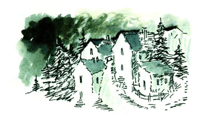 Beyazlık hiç kaybolmasa da, büyülü renkler lekeler hâlinde manzaranın içinde yerini aldı. Uzakta ağaçların arasına saklanmış bir de küçük bir kulübe yaptı.