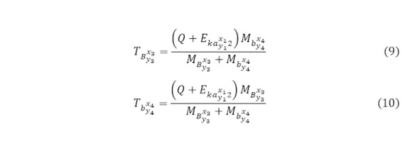 По определению величина выходящего кулоновского барьера, как можно увидеть, описывается как энергия, которую приобретают вылетающие частицы, отталкиваясь друг от друга, сразу после преодоления ядерных сил и до убывания с ростом расстояния между ними и поэтому каждая из частиц получают эту энергию, за счёт чего, если формулы кинетических энергий лёгких продуктов реакции практически не меняются, то для тяжёлых частиц формулы (37—39) приобретают новую форму в (48—50).