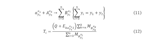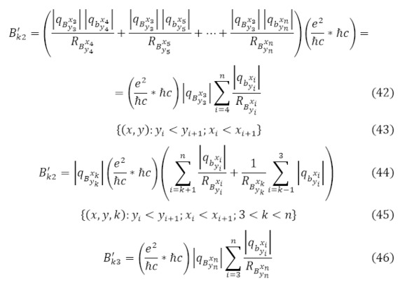 Где (42) используется для самой лёгкой частицы из всех полученных продуктов реакции в множестве (43); для всех промежуточных продуктов реакции (44) на множестве (45) с его условиями; для самой тяжёлой частицы (3.46) в масштабах множества (47).