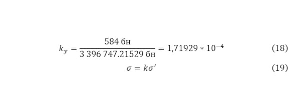 В результате проведённых вычислений удалось определить ядерное эффективное сечение, которое изменяется в квадратных метрах, однако для него введена специальная единица – барн, равная 10—28 м2 []. Но стоит указать некоторую особенность в том определении, что значение (14) является приведённым ядерным эффективным сечением, которое для практического значения переводиться через (19), где применяется константа (18), являющаяся безразмерной величиной, которая выражается через отношение практического экспериментально определённого значения ядерного эффективного сечения чаще всего используемой ядерной реакции – реакции распада урана равная 584 барна к теоретической основе, равная 3 396 747,21529 барн.