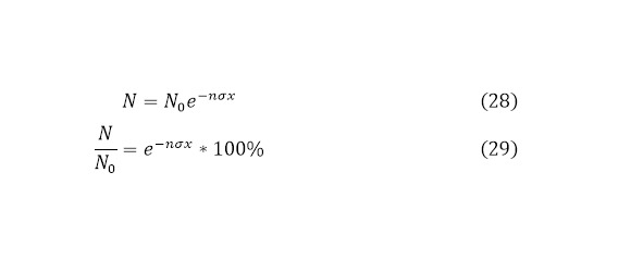 Далее, когда определено это значение, оно нужно для того, чтобы определить какая часть из всех направленных частиц действительно пройдёт через ядерную реакцию и сможет дать результат, для этого используется следующий алгоритм. Пусть на мишень налетает N (x) частиц, а после преодоления мишени, количество частиц составляет N (x) -dN, откуда dN – число всех произошедших в мишени взаимодействий. Теперь, определим, что координата на начале мишени – x, а на моменте выхода – x+dx, следовательно dx – толщина мишени. Затем вводиться определение понятия плотности ядер мишени, для того чтобы его вычислить необходимо воспользоваться (20).