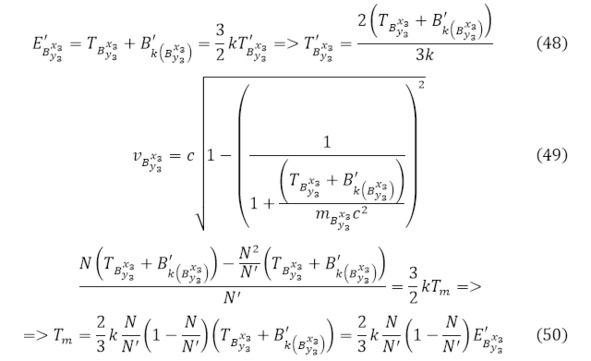 В данном случае для ядра кинетическая энергия и образуемая с его стороны температура объясняется посредством уже выведенных закономерностей для образованной части (56) и для всей мишени (57), а для лёгких частиц известна кинетическая энергия, а также заряд через (58) и ток (59).