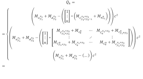 В данном случае в качестве матричного произведения выражаются все возможные вариации каналов ядерных реакций, однако, разумеется, большинство среди них, особенно те, что связанны с тяжёлыми ядрами являются маловероятными, но даже это не полный перечень, поскольку существуют также реакции, когда кинетической энергии направленных частиц становиться достаточно для создания новых частиц. Кроме того, не стоит забывать случаи, когда выходящих частиц увеличивается, то есть уже образуется 3, 4 и т. д. продуктов ядерных реакций, но только для их записи уже потребовалось использовать сложные n-мерные матрицы.