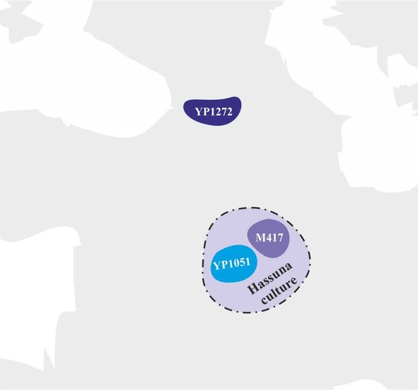 Рис.15 Географическая локализация носителей субкладов R1a-YP1272, R1a-YP1051 и R1a-M417 в середине III-го тыс. до н.э
