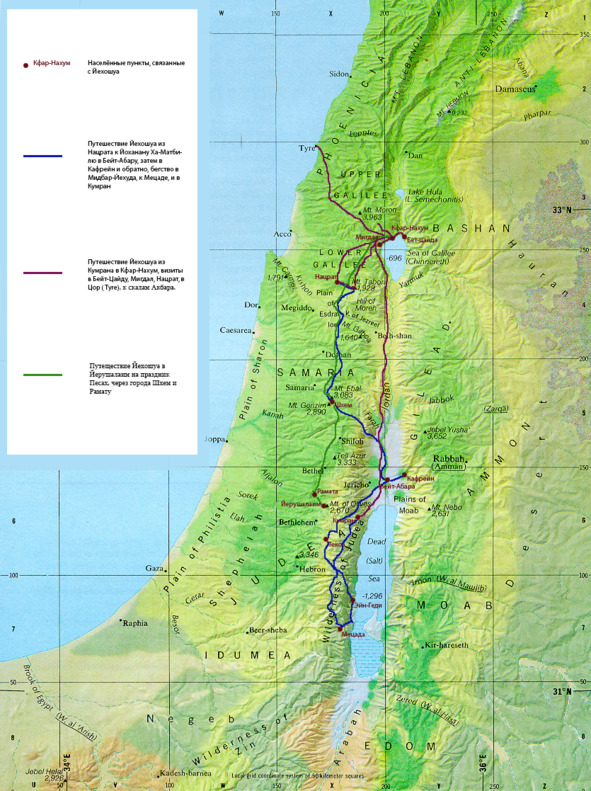 Галилея, Самария и Иудея с близлежащими землями, с маршрутом Йехошуа Бар-Йосэфа.