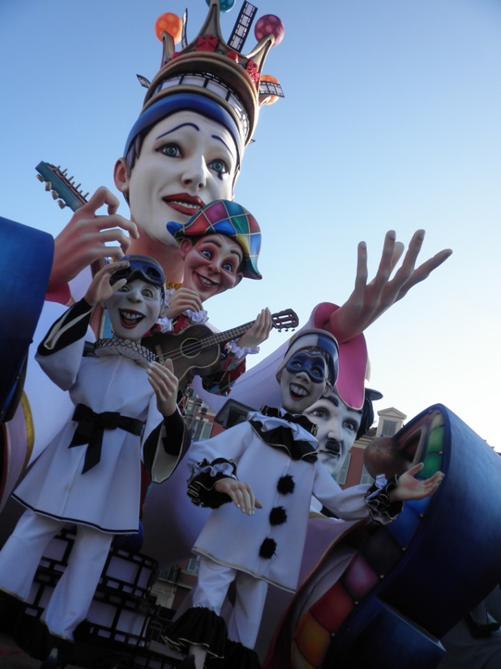 На время Карнавала в самом центре города на Площади Массена устанавливают высоченные платформы состоящие, как на стадионе, из рядов с сидячими местами. Карнавал состоит из дневного парада «Битва цветов» – 17 платформ, украшенных цветами и темой карнавала проезжают мимо трибун. На каждой платформе стоит девушка одетая в огромное цветочное платье разбрасывает букеты зрителям. Букеты веточек мимозы, роз, лилий, букеты гвоздик. После парада по улицам города ходят счастливые зрители с букетами в руках.