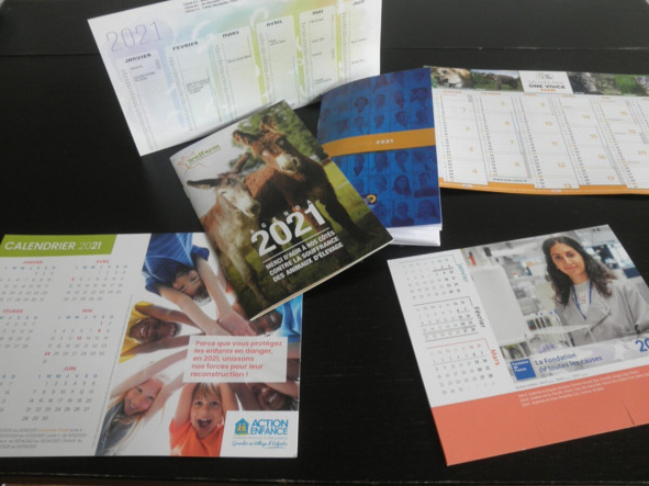 Календари разных форм от благотворительных организаций которым семья отправила пожертвование