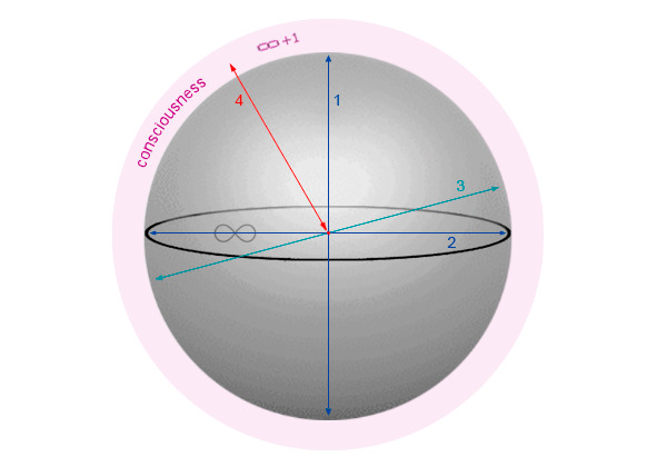 From the examples that we have discussed above and thanks to the presentation, we understand that the axis of the fourth dimension is infinite and directed inward and outward. In addition, it is necessary to understand that “Consciousness” has no limitations in terms of realization of any dimensions. Both “Consciousness” and the “Global aspect of the Entity”, as “Causes” are ‘out-of-limits’, and are expressed in this way: