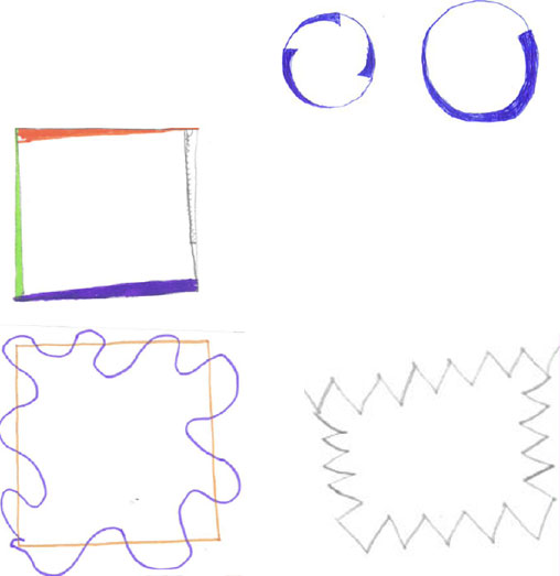 Неудачно получившиеся рисунки («зуб» в левом нижнем углу «волнистого» квадрата) следует перерисовать.