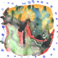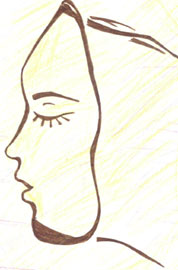 Понятна идея конфликта горизонтальных и вертикальных полос, а также выбор радужного спектра как многообразия контактов, но «тяжелые» цвета (фиолетовый, синий, красный) носят пастельный оттенок, и разделительная полоса настолько аморфна, что трагедии, собственно говоря, не получилось. Свойственна ли вообще «неконтактность» пациенту?