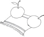 Ученику предлагается поместить единичный предмет, например яблоко на листе. Как правило, это выглядит следующим образом:
