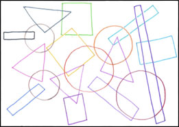 2. При наличии времени и учитывая состояние пациента, ему предлагается упражнение, заключающееся в отрисовке квадрата, круга и треугольника всеми типами линий.