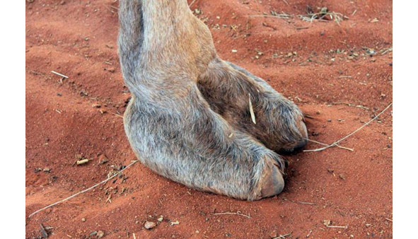 Мозолистые подушки на ступнях дают возможность верблюду уверенно передвигаться по пескам (рисунок 1), не вытаптывая пастбища, а мозоли на груди, запястьях, локтях и коленях предохраняют кожу и подошву ног верблюда от повреждений и позволяют спокойно лежать на раскаленном песке. Раздвоенная верхняя губа приспособлена для отбора нежных частей растений при пастьбе, а внутренняя оболочка щеки, язык, снабженные жесткими роговыми сосочками, помогают при пережевывании грубой пищевой массы. В горбах имеются запасы жира, которые используются в неблагоприятные периоды.