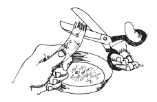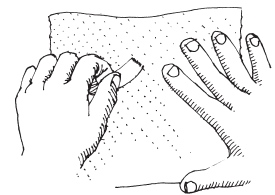 Ваша первая задача – отделить целлюлозные волокна от носового платка. Отрежьте от него полоску приблизительно 2,5x20 см. Затем по одной вытаскивайте нитки из узкого конца полоски. Получившуюся бахрому обрежьте ножницами. Все нитки, и длинные, и короткие, собирайте в миску. Продолжайте выдергивать отдельные нитки и состригать бахрому до тех пор, пока не превратите всю полоску ткани в ворох маленьких ниточек. Это займет у вас не меньше часа. Чем терпеливее и аккуратнее вы будете сейчас, тем лучше и качественнее получится ваша бумага.