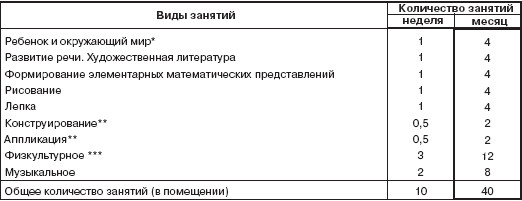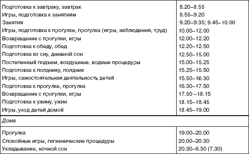 Примечание. Режим дня составлен с расчетом на 12-часовое пребывание ребенка в детском саду. Указана общая длительность занятий, включая перерывы между ними.