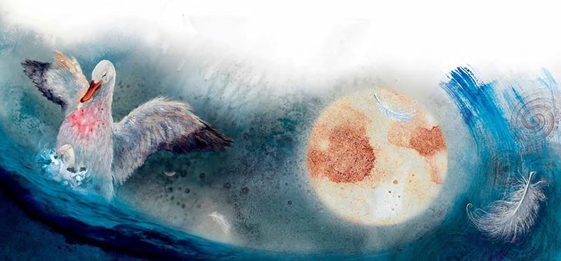 Утка наполнилась тревогой и ожиданием. Она огляделась в поисках укромного местечка, где могла бы снести своё яйцо. Но только теперь она заметила, каким пустым и неуютным был мир вокруг неё. Птицу пронзил великий страх. Едва её яйцо появится на свет, как тут же пропадёт в бездонном брюхе океана. Маленькое птичье сердце гулко забилось. Утка заметалась по воде, не зная, как быть. И когда она поняла, что во всей этой пустоте нет ничего и никого, кроме неё самой, она принялась выщипывать пух и перья из собственной грудки, чтобы свить гнездо для птенца, который уже совсем скоро ворвётся в этот мир.