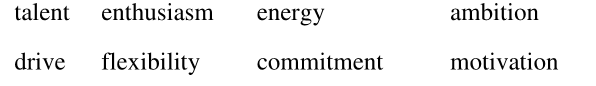 The following nouns describe an ideal candidate's abilities. Can you change them into adjectives?