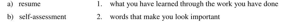 The words in the column on the right are phrases that use the word career. For each definition on the left, match it to the correct phrase on the right: