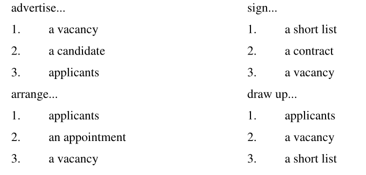 Exercise 6. For all of the verbs below, select the correct noun partner