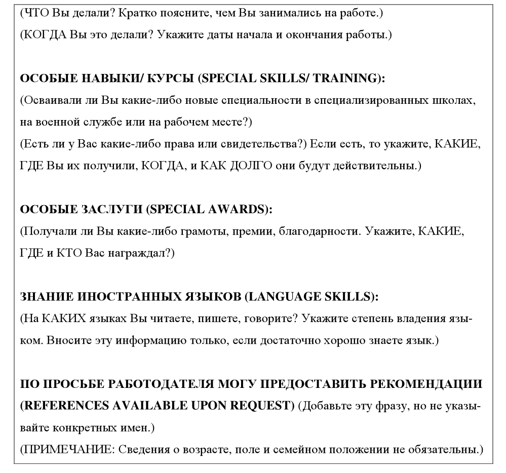 Стандартная форма резюме европейского уровня включает в себя 6 основных частей: