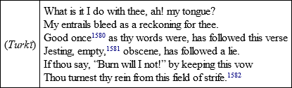 (Dec. 23rd) In order to let people get provisions, we stayed the next day in that camp. ‘Araq was drunk on that day. Mullā Muḥ. Pargharī told many stories; never had he been so talkative. Mullā Shams himself was very riotous; once he began, he did not finish till night.