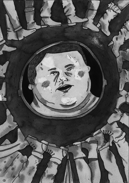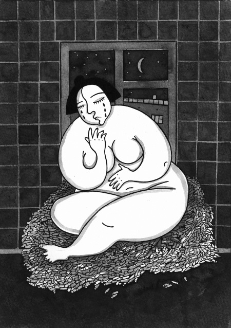 З. Зоб. А Зинаида пила из-под крана, и вырос зоб. Ела с пола, и выросло. Вот это самое выросло. Зоб. Огромный зоб. Брали врачи и прятали деньги, хихикали и не давали надежд – это был какой-то самый-самый злостный зоб. Наконец назвали сумму, чтоб резать. Но Зинаида пропала, никто не заметил куда. А потом из квартиры запахло чем-то неправильным и бесполезным. Так она и сидела на кухне, с ножом, в этом самом, в зобе, да, в зобе, да, в зобе, да, в зобе, да.