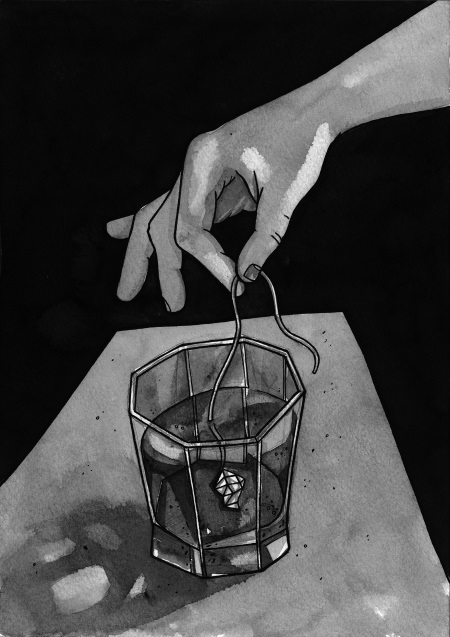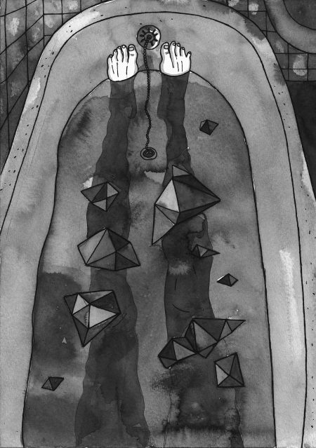 М. Медь. Михаилу некого было любить и не на кого смотреть. Он решил завести питомца: кристалл медного купороса. Повесил нитку в стакан с раствором, прищурился и стал ждать. Сначала не было ничего, потом вырос маленький, синий. Потом пришла к нему одна, вся такая из плавных линий, но в драном лифчике. И случайно разбила стакан с питомцем. Михаил собрал осколки, выбрал покрупней – дно оказалось – и этим дном стал ковыряться в ней. Стал ковырять ей лицо и тело. Та убежала, уползла, улетела, а он сел на пол, на кровь и купорос, прищурился и стал ждать.
