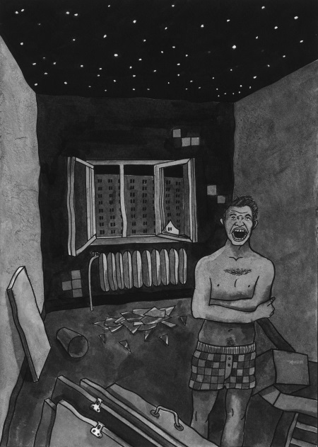 Е. Еще. Егор купил метлу, совок и бритву для прыщавых щек. Чистил все вокруг, скреб, царапал, стирал, как мог, украшал среду, подозревая, что все-таки он не на «Е», а на «А». То есть в аду.