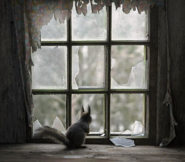 Я вошёл в сени, на окне с разбитым стеклом сидела белка. Она совершенно не испугалась меня. У стены стоял ларь для муки, я попытался открыть его – ничего не получилось. Через приоткрытую дверь виднелась внутренность дома.