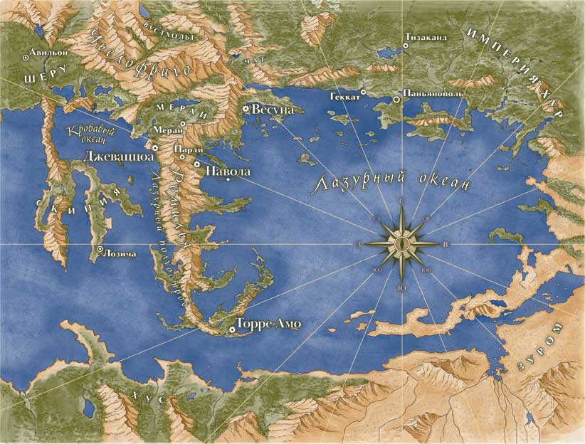 Я старался понять, скользя глазами по бьющимся армиям. Справа, с позиции Шеру, сверкал на солнце наш город Навола, стоящий в устье реки Каскада-Ливия, там, где она впадала в огромный Лазурный океан. Башни многочисленных соперничавших архиномо возвышались над городскими стенами, сияя в солнечных лучах.