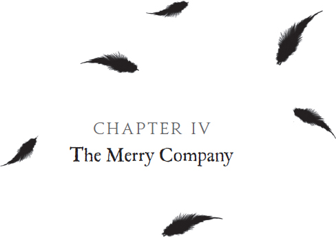 A company of riders was coming through the trees toward the cottage. They looked all black-and-white at first—black riders on white steeds, or white riders on black steeds—and with the dark branches interlacing behind them and the snow beneath their hooves, it was as if they were a living extension of the forest itself, like stitchery in a pillowcase.