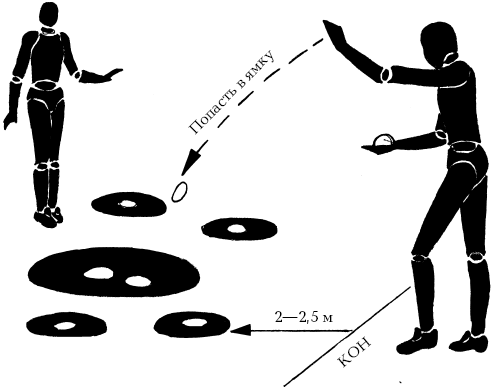 КамешкиВ центре площадки роют ямку среднего размера, вокруг нее в радиусе менее 1 м – 3–4 ямки поменьше. У каждого игрока по 10 камешков (вместо камешков могут быть керамические или металлические шарики-подшипники, крупные пуговицы).
