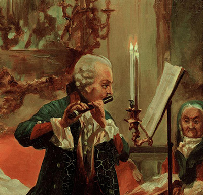 Flötenkonzert Friedrichs des Großen, König von Preußen (1740-1786) in Sanssouci. Gemälde, Adolph von Menzel (1815-1905)