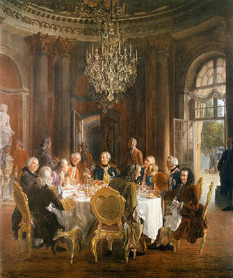 Tafelrunde bei Friedrich II. in Sanssouci. Gemälde, Adolph von Menzel (1815-1905)